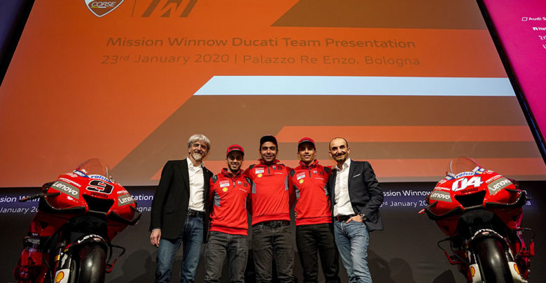 23日Ducati車隊在義大利波隆那(Bologna)的恩佐王宮(Palazzo Re Enzo)舉辦了2020年的Mission Winnow Ducati車隊發表會。 活動中車手Andrea Dovizioso 以及 Danilo Petrucci與Ducati執行長Claudio Domenicali和Ducati Corse總經理Luigi Dall’Igna一同為Desmos…