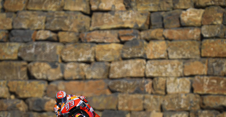 MotoGP亞拉岡站周五在早上FP1的練習中Marc Marquez(Repsol Honda Team)就做出驚人的1:46.869單圈時間,差點刷新懸掛已久的賽道單圈記錄。會在一早就拼出這麼快的時間是因為天氣預報顯示周六排位賽可能有下雨的可能,因此為了確保能直接進入Q2而這麼做。 周五最後這位本田車手就以這成績排在首位結束,Yamaha廠隊兩位車手Maverick Viñales以及Valen…