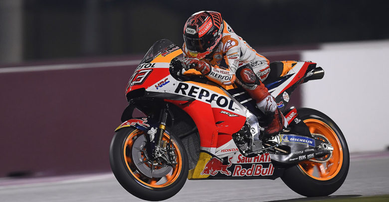 MotoGP開季前的最後一場季前測試周六晚間在卡達的Losail賽道登場,Repsol Honda廠隊車手全員到齊參加了測試。Marc Marquez可以說是第一位在太陽下山就馬上下賽道測試的車手,測試期間雖然在最後一彎發生了轉倒不過沒有大礙,最後首天測試Marc Marquez以1:56.167秒的單圈時間排在第10位。 Marc Marquez,「老實說今天我很滿意我的身體狀況,與馬來西亞相比…
