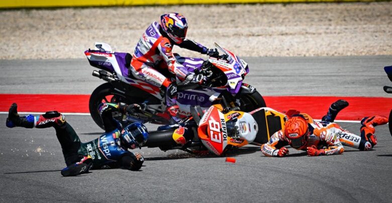 葡萄牙週日正賽在開賽不久就發生了戲劇性的事故。Marc Marquez (Repsol Honda Team)在第三圈的超車中撞上了地主車手Miguel Oliveira (CryptoData RNF MotoGP™ Team),兩人都因此退賽。 Marc右手第一掌骨疑似有骨折的情形,不過他希望能出賽阿根廷站。而Oliveira只因摔車造成一些瘀傷,並無大礙。不過這位地主車手的精采表現就這樣嘎然…