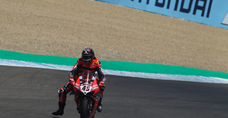 Scott Redding在西班牙Jerez站的第二場比賽中再次強勢發揮。在第二圈第一彎超過Jonathan Rea後就站穩第一位逐漸拉開差距,Rea這場雖然採用與Superpole race同樣的設定,但在高溫中下半段的賽事看來是碰到了一些狀況,先後被Chaz Davies以及Toprak Razgatlioglu超越而跌出頒獎台外,最終Jonathan Rea以12秒多的差距取得第六名結束這場…