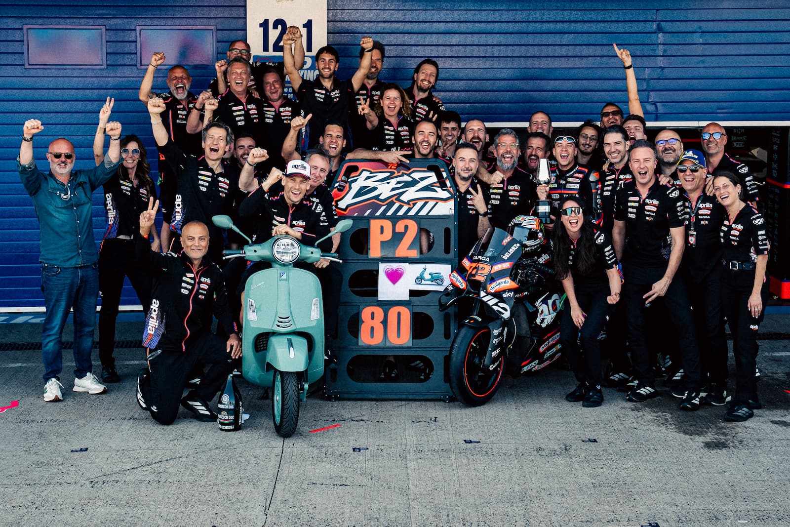 這個 Jerez 週末,對 Aprilia Racing 來說整體是正面的。Marco Bezzecchi 跑出很紮實的一場比賽,以第二名完賽,也把自己的連續頒獎台紀錄推進到六場(包含 2025 年)。這也是這位義大利車手本季前四站連四場站上頒獎台,成為自 2016 年以來,MotoGP 級別第一位做到這件事的車手。這同時也是他個人在 Jerez 的MotoGP最佳成績,也寫下 Aprilia 在這條賽道的新高,超越 2022 年 Aleix Espargaró 拿下第三的成績。