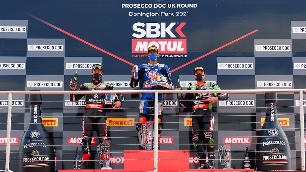 WorldSBK多寧頓公園站(Donington Park)的第一場賽事因為前面的下雨而從濕地開跑,Toprak Razgatlioglu (Pata Yamaha with BRIXX WorldSBK)靠著出色的起跑讓他最終贏得這場比賽勝利,寫下二連勝的佳績。