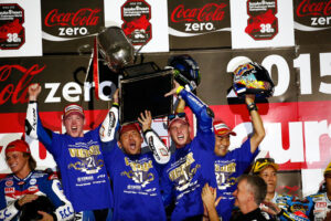 中須賀目前擁有四座鈴鹿 8 耐冠軍。他在 2015 年首度奪冠,當時與Pol Espargaró、Bradley Smith共同代表 Yamaha Factory Racing Team 出賽。並自此展開四連霸的輝煌篇章,完成 2015 至 2018 年四連霸。